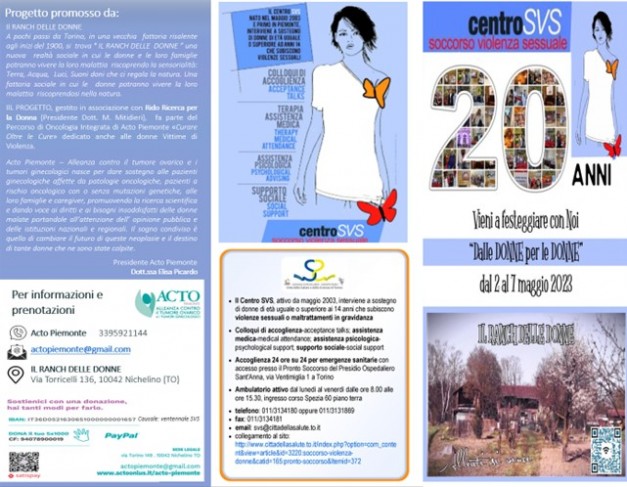 Il Centro Soccorso Violenza Sessuale – S.V.S. – dell’Ospedale S. Anna festeggia 20 anni di attività da 2 al 7 Maggio con l’iniziativa “Dalle donne per le donne” promossa dall’Associazione Contro il Tumore Ovarico e i tumori ginecologici – A.C.T.O. Piemonte. L’evento si svolgerà presso la struttura Il Ranch delle donne di Nichelino. SVS è impegnata da 20 anni accanto alle donne che subiscono violenza sessuale e maltrattamento in gravidanza. Leggi di più.